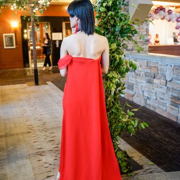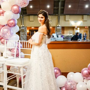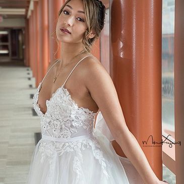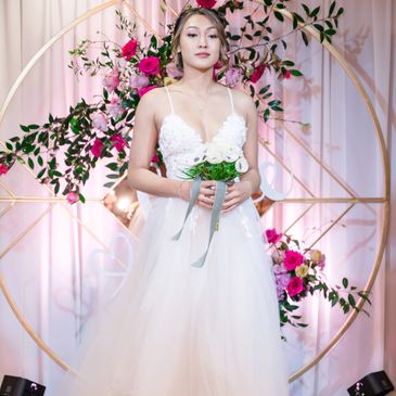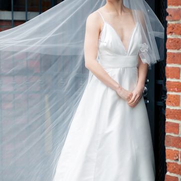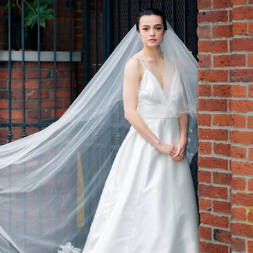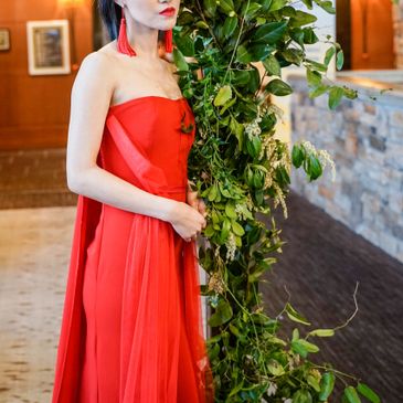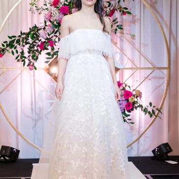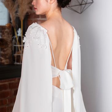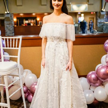 Leafy lace A line fairy dress with detachable off the shoulder ruffle piece